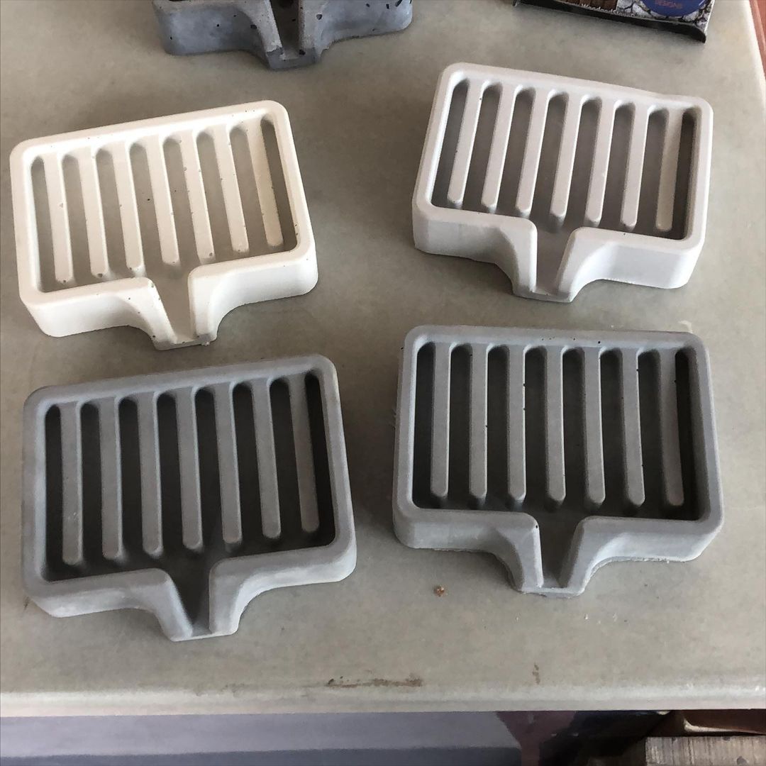 Our concrete soap dish/sponge holder looks great and is so useful. Self draining. Made from concrete and available in several colors. Makes a nice gift and it looks great on our Concrete Vanity Tops or at your utility sink.